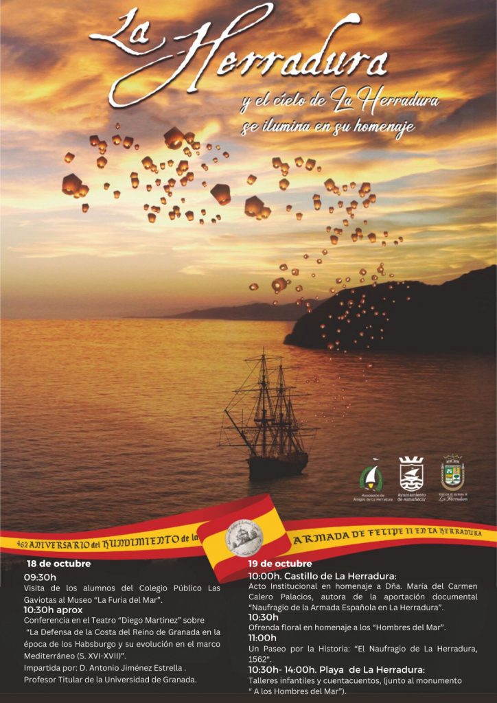 El Ayuntamiento de Almuñécar, la tenencia de alcaldía de La Herradura y la Asociación de Amigos de La Herradura han preparado un completo programa de actividades para conmemorar el 462 aniversario del hundimiento de la Armada Española de Felipe II en la bahía de la Herradura, que se produjo en 1562 por una terrible tempestad, en la que se hundieron entre 25 y 28 galeras de guerra y murieron cerca de 5.000 personas.
