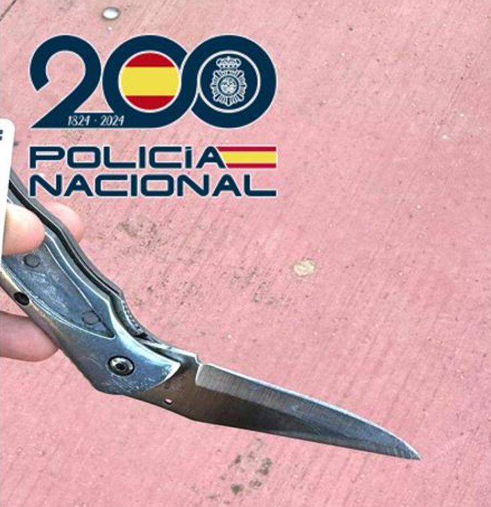 - Los agentes se desplazaron rápidamente hasta el lugar encontrando a dicho ciudadano de rodillas y blandiendo una navaja de 9 centímetros de hoja que apuntaba hacia su cuerpo