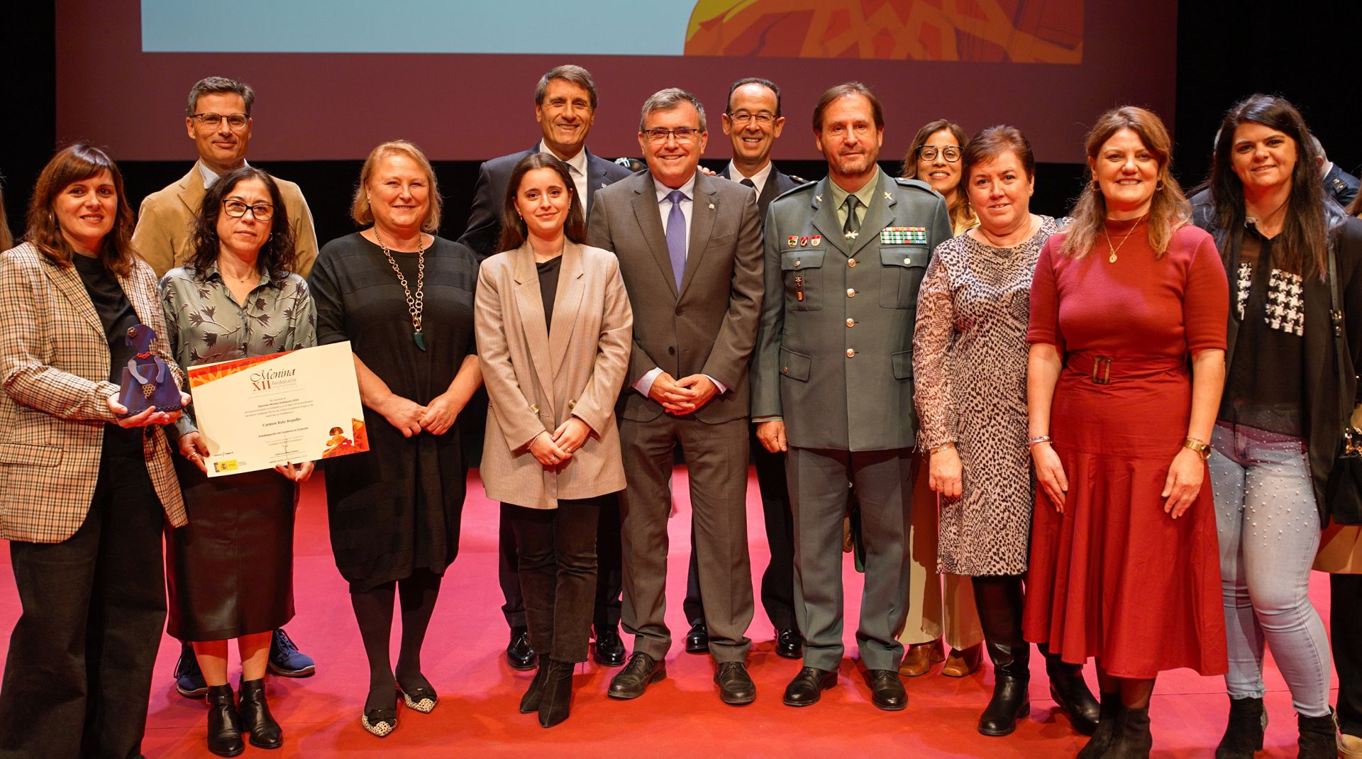 Los componentes del Foro sobre trata con fines de explotación sexual y mujeres en entornos de prostitución de Granada ha recogido esta mañana, en un acto celebrado en el Teatro Municipal Juan Bernabé de Lebrija (Sevilla), el Reconocimiento Menina 2024 que otorga la Delegación del Gobierno de España en Andalucía, promovidos por el Ministerio de Igualdad, con motivo del 25N, Día Internacional para la Eliminación de la Violencia contra las Mujeres, para reconocer y apoyar la labor de entidades, asociaciones, instituciones y particulares andaluces en la erradicación de cualquier forma de violencia sobre la mujer.