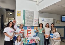 Un stand informativo, en la puerta del Centro de Salud, recuerda e informa sobre los peligros que tienen el tabaco y el vapeo...