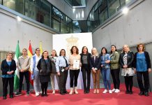 La vicepresidenta IV de la Diputación de Granada, Mónica Castillo de la Rica, acompañada de representantes de la Plataforma Nuestro Corazón por Bandera,...