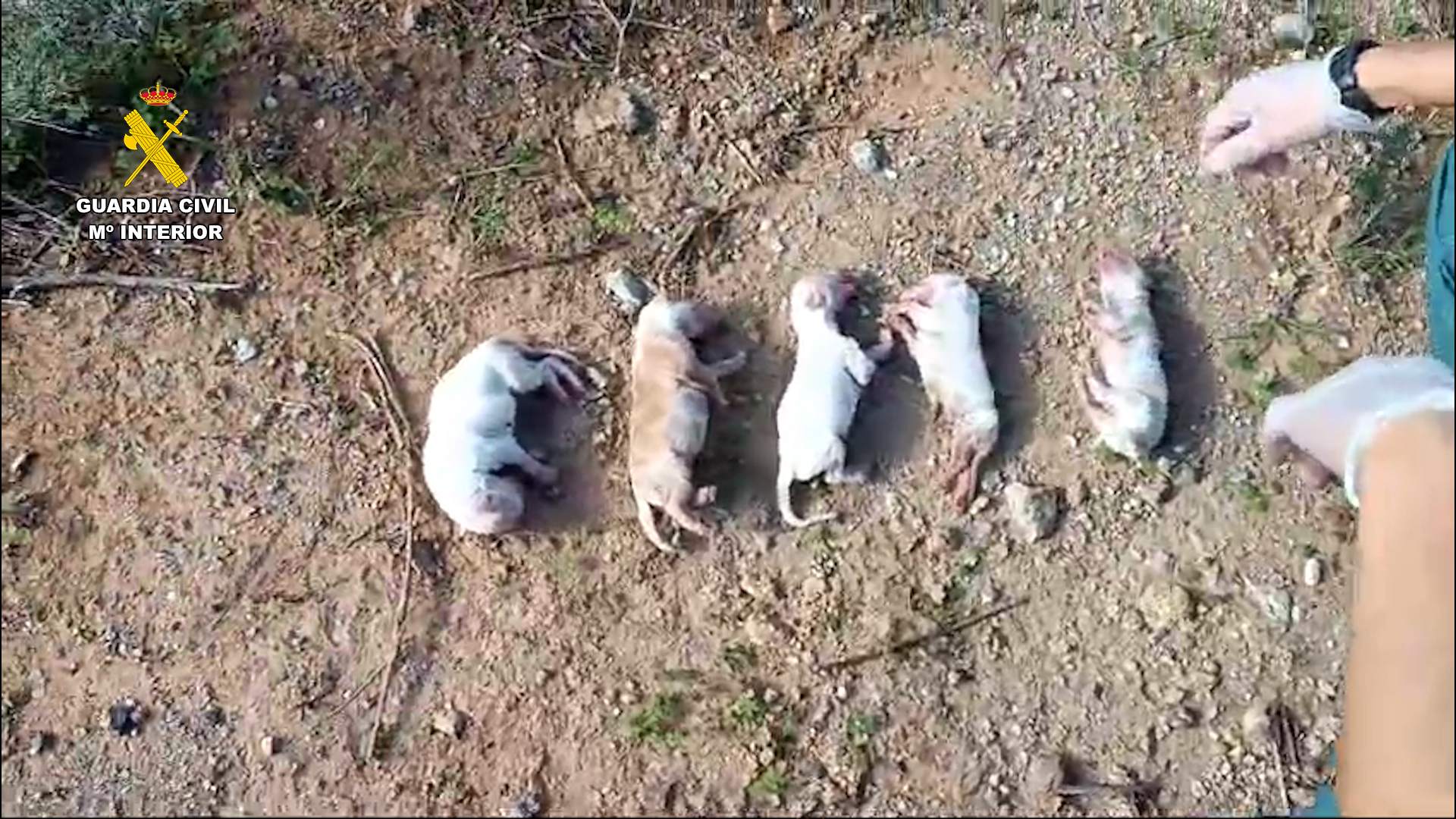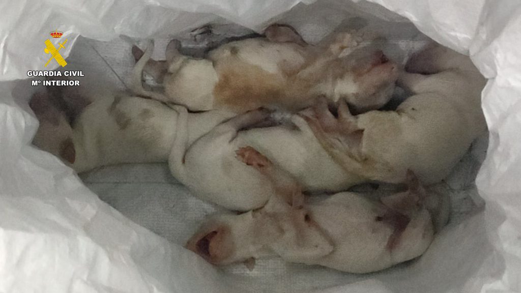 La Guardia Civil ha investigado por un delito de maltrato animal al autor del abandono de seis cachorros de raza podenco. Los cachorros se encontraban en el interior de un saco de pienso para perros, abandonados en un descampado del paraje Cortijo Miguel Simon Níjar, Almería. De los seis abandonados, cinco habían fallecidos y solo uno seguía con vida.