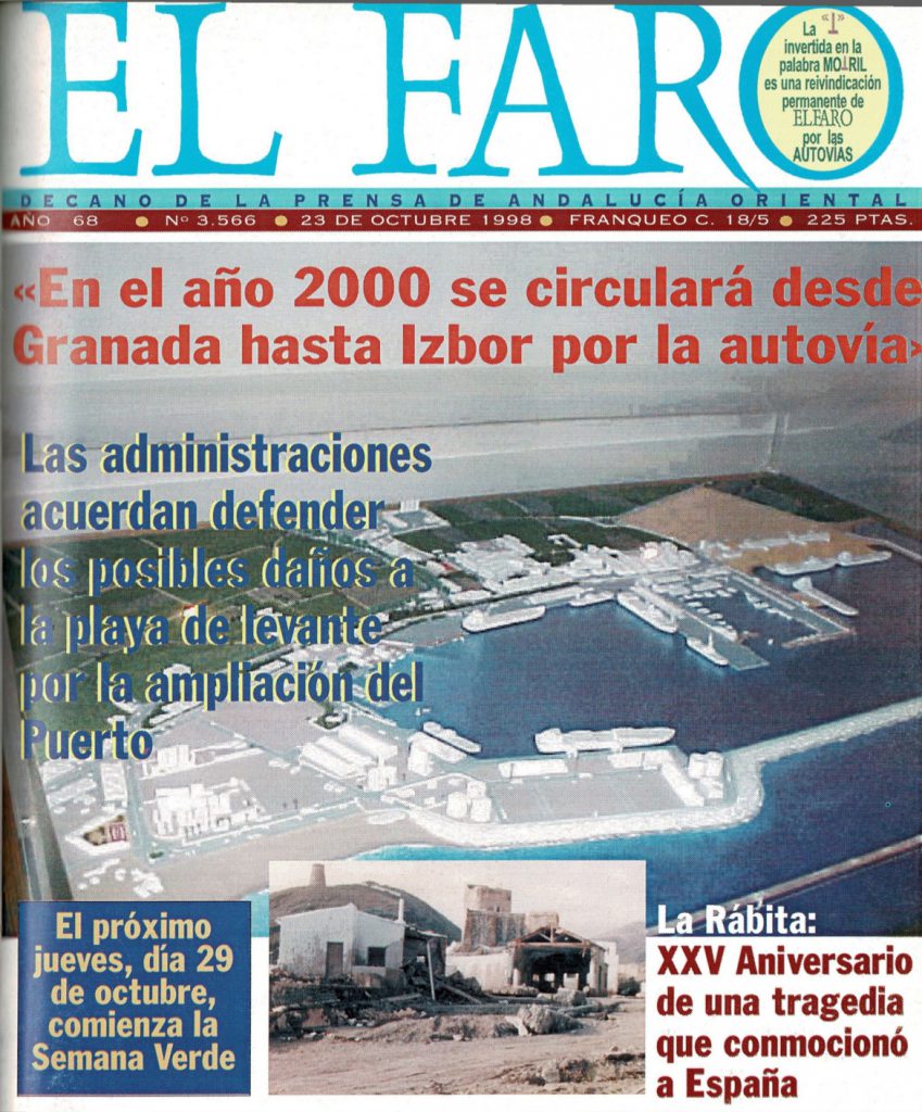 La Autoridad Portuaria de Motril conmemora su 20 ANIVERSARIO (2005-2025), con motivo tan señalada efemérides divulgamos las portadas y noticias en prensa escrita de El Faro, dando conocimiento a toda la sociedad de la historia de la dársena motrileña a través de las portadas originales seleccionadas y referentes al desarrollo del Puerto de Motril, brindando el fiel reflejo de las noticias que marcaron décadas en nuestra tierra y en nuestra historia, para común conocimiento de todos los lectores del diario.