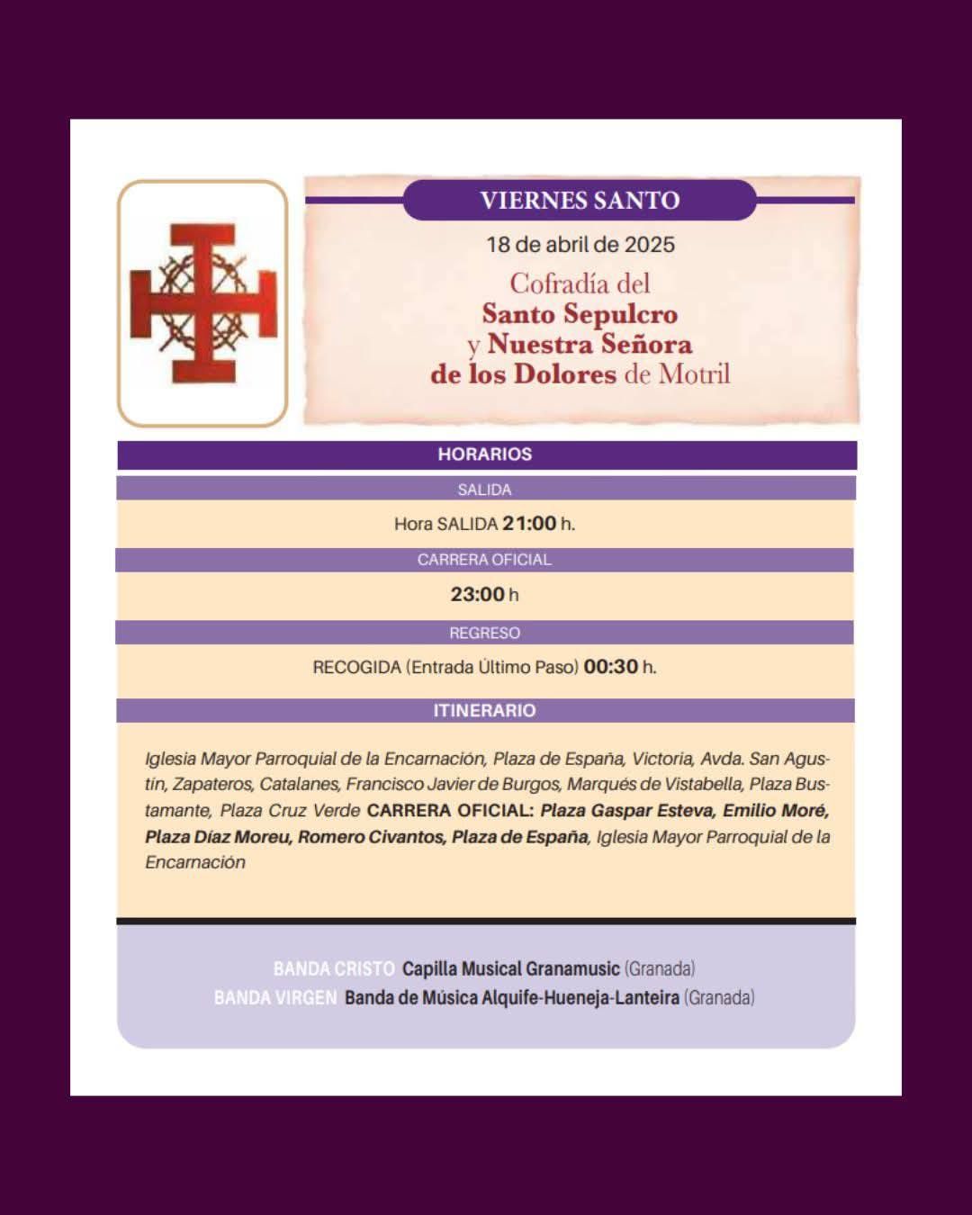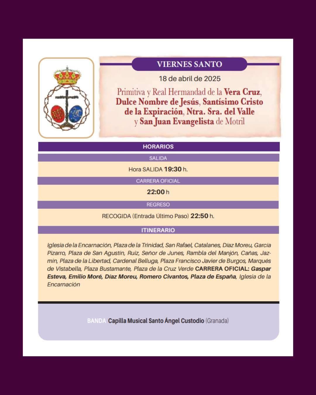 EL FARO les ofrece en directo la Semana Santa de Motril. Hoy, Viernes Santo, comenzamos la retransmisión a las 19:00, con la estación penitencial en directo de la Muy Antigua Archicofradía del Dulce Nombre de Jesús y Primitiva y Real Hermandad y Cofradía de Nazarenos de la Santa Vera Cruz y María Santísima del Valle; y la Cofradía del Santo Sepulcro y Nuestra Señora de los Dolores, desde la Iglesia Mayor Parroquial de la Encarnación.