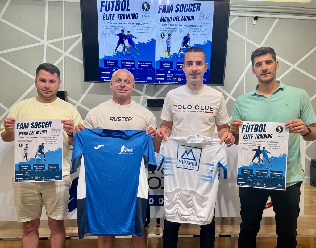 Motril se convierte este verano en punto de referencia para la formación de jóvenes futbolistas gracias al campus conjunto de FAM Soccer Manu del Moral y Fútbol Élite Training, que se celebrará durante el mes de julio en las instalaciones municipales de Puntalón. La actividad ha sido presentada hoy en rueda de prensa por el teniente de alcalde de Deportes del Ayuntamiento de Motril, Daniel Ortega, acompañado por algunos de los organizadores del campus: Francisco Quero «Nene», Arturo Palomares y Darío Ortega.