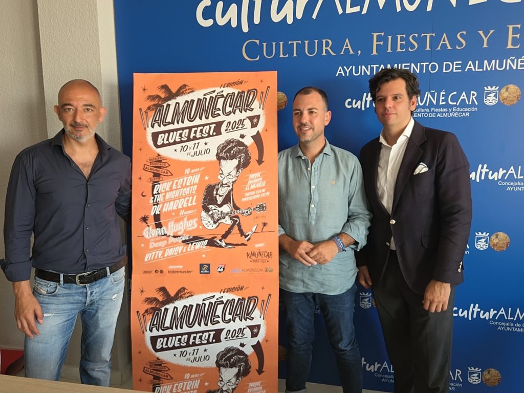 El concejal de Cultura del Ayuntamiento de Almuñécar, Alberto García Gilabert, acompañado y el director del festival, Aitor Simarro, ha presentado el Almuñécar Blues Fest, que traerá el próximo 10 y 11 de julio al parque El Majuelo todo un cartel de lujo con reconocidos nombres de músicos y bandas internacionales de blues y rock de todos los tiempos.