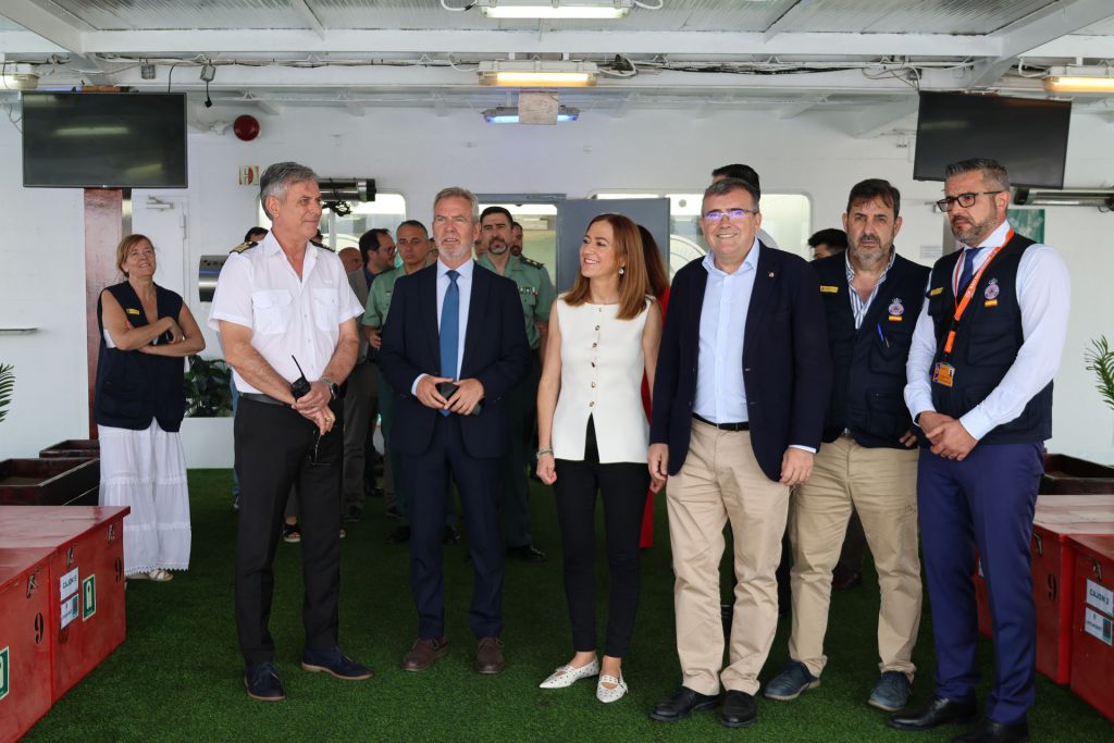 Virginia Barcones, directora general de Protección Civil y Emergencias del Ministerio del Interior, acompañada del subdelegado del Gobierno, José Antonio Montilla y el presidente de la Autoridad Portuaria, José García Fuentes, ha visitado la dársena para conocer de primera mano el desarrollo del dispositivo