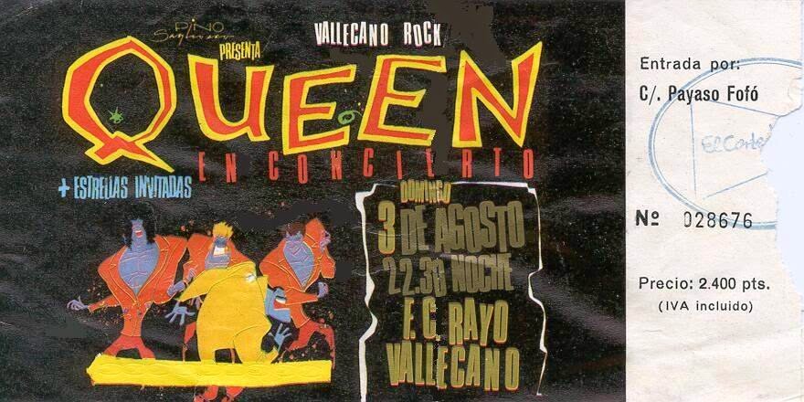 John Deacon (1951), Brian May, Freddie Mercury y Roger Taylor, acompañados por Spike Edney (1951) a los teclados, se presentan la noche del 3 de agosto en el madrileño Estadio del Rayo Vallecano ante 25.000 personas que se agolpan sobre el magnífico y gigantesco escenario en forma de corona que el grupo monta para la gira. Aunque este dato es el oficial, el estadio tiene en ese momento capacidad para veinte mil espectadores durante un partido de fútbol, pero los organizadores no dudan en ofrecer la cifra de casi 40.000 entradas vendidas, lo que explica que el público esté apretado sobre el césped del estadio de la calle Payaso Fofó. El precio de las entradas no es barato: dos mil cuatrocientas pesetas de la época.