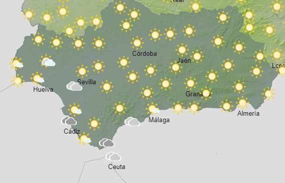 La AEMET anuncia para hoy en Andalucía: cielos poco nubosos o despejados, con intervalos de nubes bajas y brumas matinales en el litoral. Nubosidad de evolución diurna en las sierras del interior oriental, donde no se descartan chubascos aislados por la tarde que pueden ir acompañados de tormentas. Temperaturas sin cambios o en descenso, que será más acusado en las máximas del tercio occidental. En el litoral mediterráneo y el Estrecho, vientos flojos a moderados de levante; en el resto, vientos flojos variables tendiendo a componente oeste, ocasionalmente moderados por la tarde.