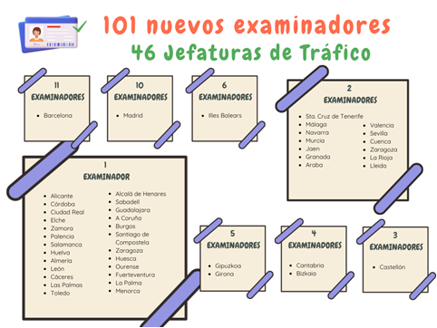 A nivel estatal, serán un total de 101 los funcionarios que llevarán a cabo sus tareas en 46 Jefaturas Provinciales de Tráfico de todo el país. Estas incorporaciones forman parte del compromiso de la Dirección General de Tráfico para aumentar la capacidad de examinar en algunas jefaturas concretas, intentando maximizar los recursos disponibles con la demanda del servicio y poder así mejorar la capacidad y el día a día de los exámenes en cada provincia.