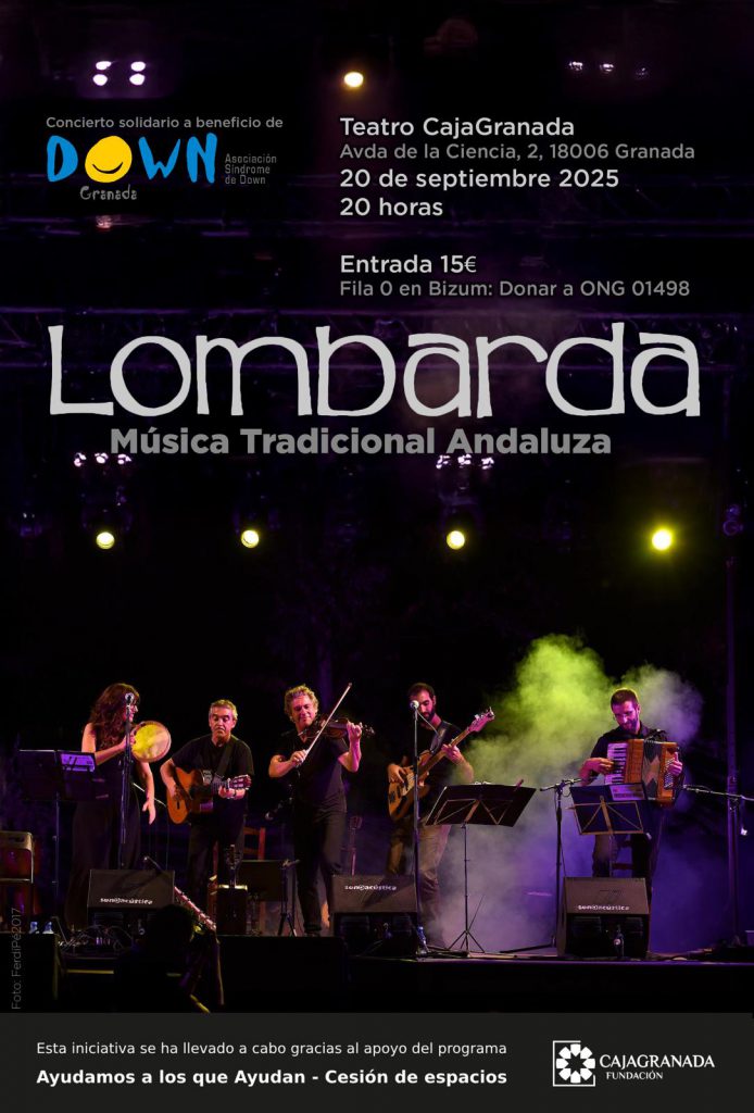 Desde la Asociación Síndrome de Down de Granada (Down Granada) organizan el próximo sábado 20 de septiembre a las 20:00 horas, en el Teatro CajaGranada, un concierto solidario del grupo Lombarda, referente de la música tradicional andaluza.