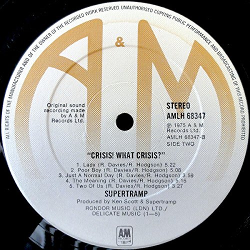 El Long Play de “Crisis? What Crisis?” tiene 5 temas por lado, con una duración total de 47’24” y la frase del título es usada en la película “El día del Chacal” (1973), dirigida por Fred Zinnemann (1907 – 1997) e interpretada por Edward Fox (1937), y también fue popularizada por el diario “The Sun”, 4 años más tarde para reflejar la situación política inglesa de aquellos días.