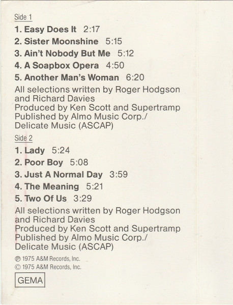 Rick Davies es la voz solista en 4 canciones, una de ellas compartida con Roger Hodgson. Su atractiva voz de tenor y sus atmosféricos teclados dotan al sonido de la banda de unas texturas y unos paisajes sonoros memorables. La labor del multi-instrumentista John Helliwell y su manera de interpretar el clarinete, la flauta y las diversas variedades de saxo le convierten en uno de los “señores del viento” de la historia del rock. El trabajo de Dougie Thomson con el bajo y Bob Siebenberg con la batería, dan una fuerza y un empuje al sonido del álbum con una destacable calidad. El álbum comienza con “Easy Does It”, “Despacio”, recordada por el sonido del silbido, unos pasos sobre el asfalto, el claxon de un auto y la voz de Roger Hodgson cantando: “Y si mis pensamientos tuvieran alas, yo sería el pájaro que canta, volaría donde el amor no es tímido y todos están dispuestos a intentarlo…”