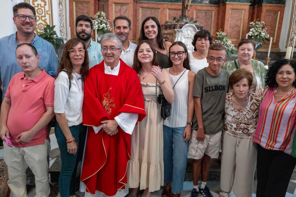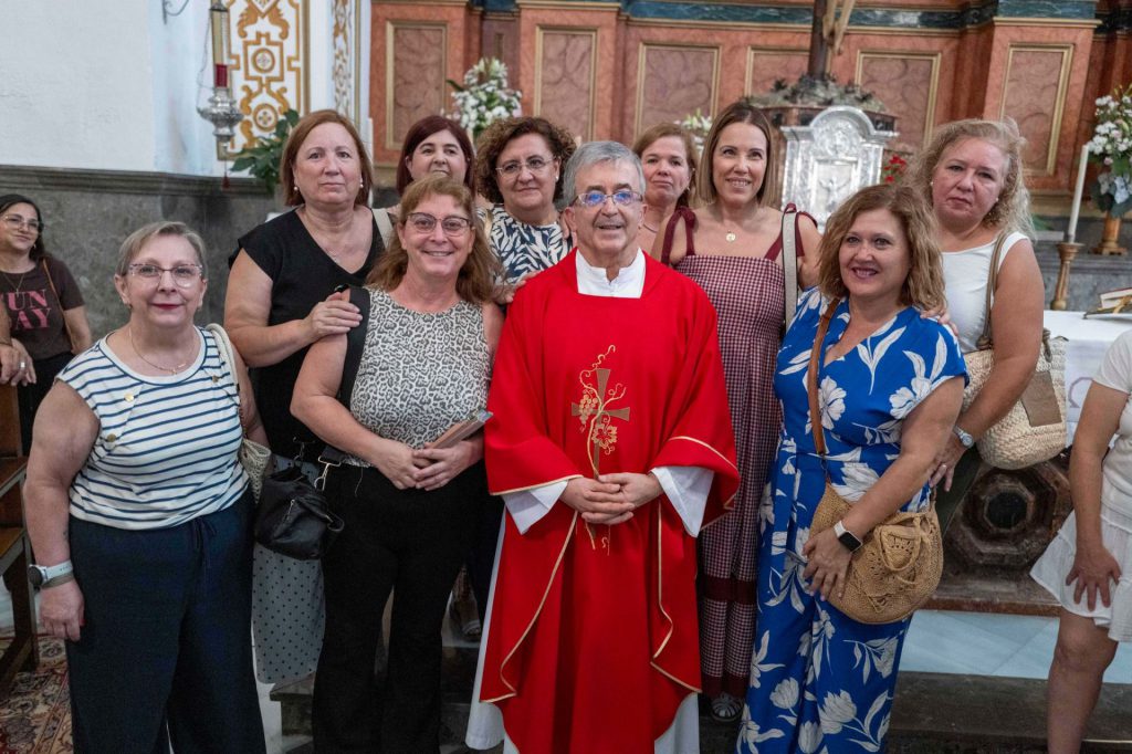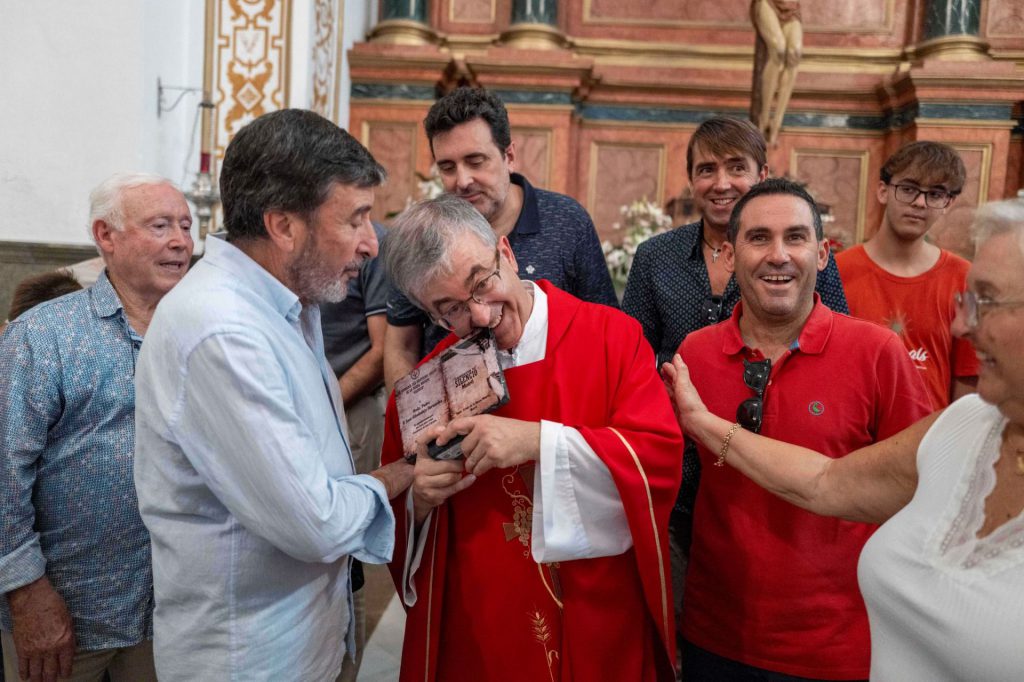 La cercanía con el párroco y los múltiples afectos que ha recibido durante su ejercicio pastoral se han hecho presentes en la celebración del sacramento de la comunión, donde filas interminables de fieles han querido recibir la hostia sagrada de sus manos como forma de unión con Cristo en la presencia de su hijo y discípulo en la palabra del Señor. Próxima a finalizar la santa misa, los fieles presentes han obsequiado al párroco con varios regalos, entre ellos cuatro casullas con los colores propios de su celebración, el blanco para Pascua, el rojo para el martirio y el Espíritu Santo, el verde para la esperanza y Tiempo Ordinario y el morado para la Cuaresma y Adviento de penitencia. Asimismo, ha recibido un porta-viático para la asistencia a los enfermos que no pueden asistir personalmente a la santa misa. D. José Albaladejo ha recibido abrumado este gesto de confraternidad con sus fieles, a los que ha agradecido profundamente su cercanía y predisposición a todo cuanto les ha requerido. Finalizada la santa misa, han sido innumerables las felicitaciones personales al párroco junto a la enorme profusión de fotografías que dan cuenta del particular gesto de afecto y querencia que se ha ganado con su labor pastoral a lo largo de los años. Finalizada la misma, se ha ofrecido a los presentes un pequeño refrigerio junto a la puerta norte de la iglesia, donde los fieles han departido recordando anécdotas vividas junto al párroco.
