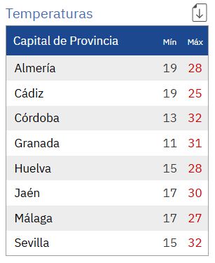 La AEMET prevé para hoy sábado en Andalucía: cielos poco nubosos aumentando a muy nubosos, con predominio de las nubes altas. Brumas matinales en el litoral atlántico y el área del Estrecho, sin descartar nieblas. Temperaturas mínimas sin cambios; máximas en ascenso en la mitad sureste de la comunidad, y sin cambios o en ligero descenso en el resto. Vientos flojos variables, aumentando a entre flojos y moderados de componente oeste.