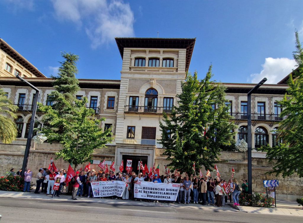 El Sindicato de Pensionistas de CCOO Granada y la Unión de Jubilados y Pensionistas (UJP) de UGT Granada, han celebrado este miércoles 1 de octubre, el Día Internacional de las Personas Mayores, una concentración en la entrada de la Delegación de Gobierno de la Junta de Andalucía en Granada, para denunciar la grave situación de dependencia que viven las personas mayores, alertando de que la mayoría de quienes solicitan, esperan o reciben prestaciones de dependencia son personas mayores de 65 años, en su mayoría mujeres y con un peso cada vez mayor de las mayores de 80. En Granada, hay más de 9.500 personas en lista de espera, y se están tramitando a día de hoy solicitudes del año 2022, es decir, que la lista de espera es de unos tres años, bastante más que la media andaluza que es de un año y medio aproximadamente, 565 días.