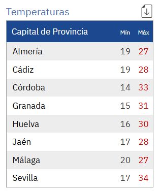 La AEMET prevé para hoy en Andalucía: cielos poco nubosos, con intervalos de nubes altas. Temperaturas con pocos cambios, salvo ascenso de las máximas en la vertiente mediterránea. Vientos flojos variables. Levante moderado en el Estrecho , disminuyendo durante la tarde.