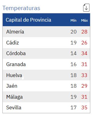 La AEMET anuncia para este sábado en Andalucía: Cielos poco nubosos, con intervalos de nubes altas. Temperaturas en ascenso en el litoral mediterráneo, con pocos cambios en el resto. Vientos flojos variables, tendiendo a componente oeste por la tarde, ocasionalmente moderados en el litoral.
