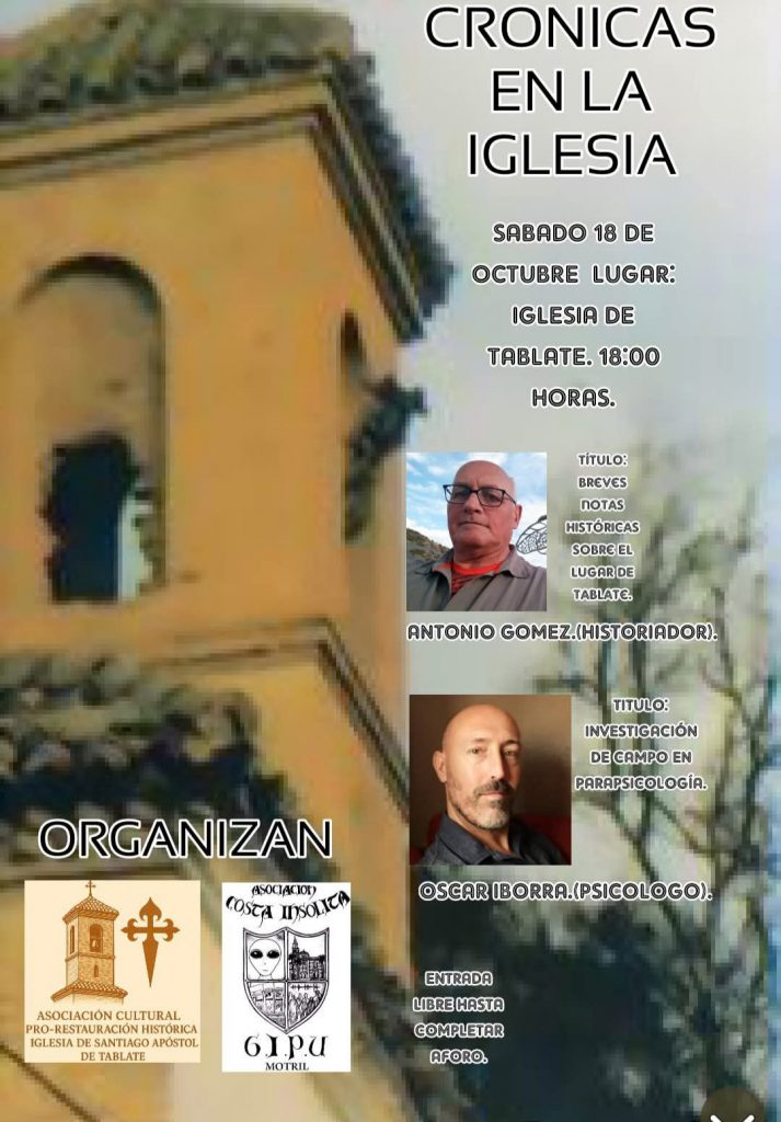 La Asociación Costa Insólita organiza ‘Crónicas en la Iglesia’ en Tablate, ésta vez junto a sus amigos de la Asociación Cultural pro-restauración histórica iglesia de Santiago Apóstol de Tablate, situado en la parte suroriental de la comarca del Valle de Lecrín.