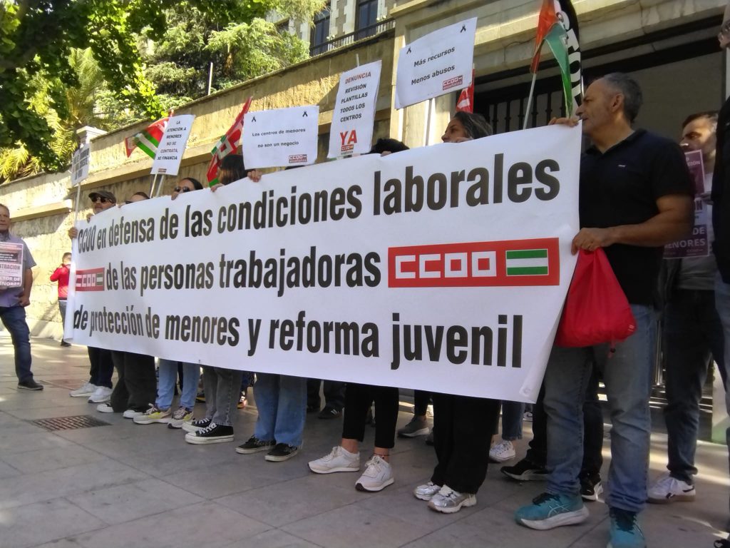 CCOO Delegadas y delegados de CCOO se han concentrado hoy para denunciar la situación en la que se encuentran los centros de protección de menores y de justicia juvenil en Granada, en los que trabajan medio millar de profesionales