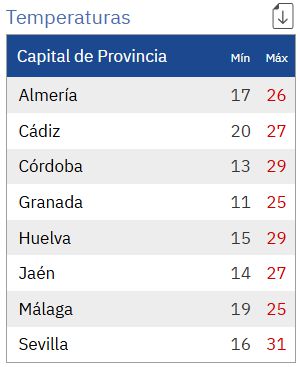 La AEMET anuncia para este sábado en Andalucía: cielos nubosos en la vertiente mediterránea, sin descartar precipitaciones débiles y ocasionales, más probables en las sierras. Cielos poco nubosos en el resto, aumentando a nubosos con nubes medias y altas por la noche. Temperaturas sin cambios o mínimas en ligero descenso. Vientos flojos a moderados de levante en el litoral mediterráneo y Cádiz, con intervalos fuertes en el Estrecho; en el resto, vientos flojos variables, con intervalos moderados de componente sur en el interior por la tarde.