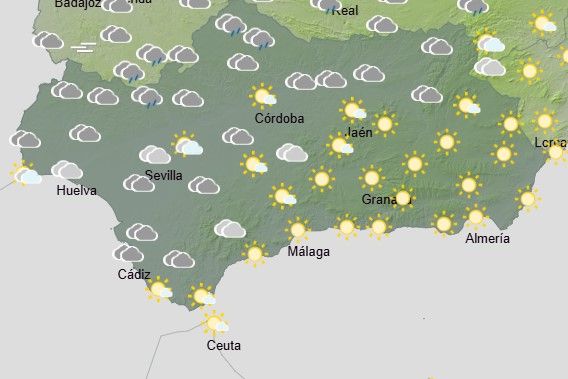 La AEMET anuncia para hoy en Andalucía: cielos poco nubosos en la vertiente mediterránea. En el resto, cielos nubosos o cubiertos, con precipitaciones débiles y ocasionales, más probables en las sierras. Brumas matinales en la vertiente atlántica, sin descartar nieblas. Temperaturas sin cambios, localmente en ascenso en la vertiente mediterránea. Vientos flojos a moderados de componente oeste, con intervalos fuertes en el litoral mediterráneo y sierras orientales.