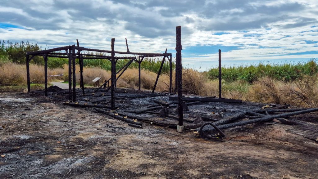 El Ayuntamiento ha condenado este lunes el acto vandálico registrado esta mañana en la Playa de las Azucenas, donde un incendio ha destruido por completo la pérgola y la zona de sombra y descanso instalada para el disfrute de vecinos y visitantes.