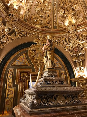 Es de destacar el gran volumen en altorrelieve de la hojarasca de las pechinas y cúpula, a pesar de todo ello la decoración del camarín resulta frágil y carente de pesadez. Todo aparece dorado y bruñido, alternándose los brillos y los mates. La policromía es suave y existe una unidad de relación entre los diversos elementos arquitectónicos y decorativos, consiguiéndose una obra llena de belleza.