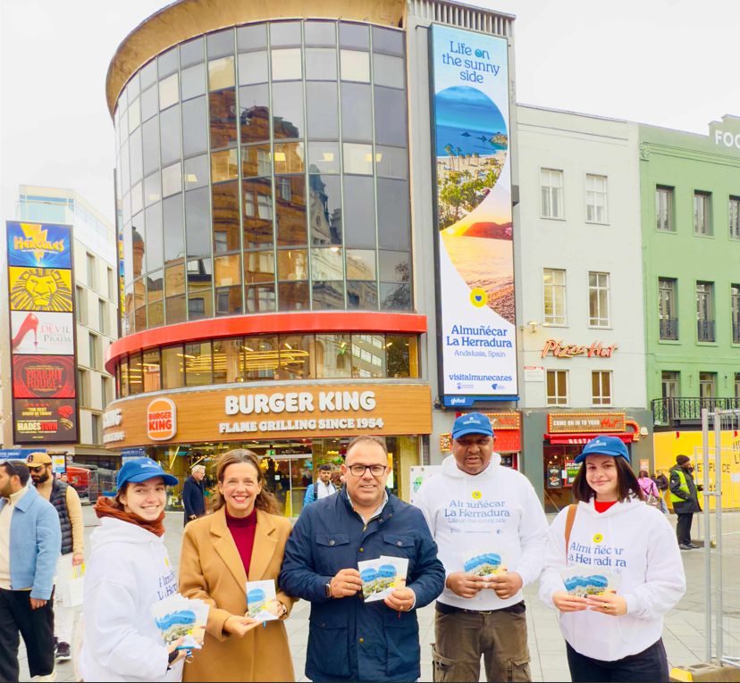 El Patronato de Turismo de Almuñécar ha activado hoy, de forma efectiva, su campaña de promoción en la ciudad de Londres, coincidiendo con la World Travel Market 2025, una de las grandes citas profesionales del turismo a escala global. El dispositivo arranca con presencia simultánea en Leicester Square y Victoria Station, y se complementa con inserciones en medios británicos de amplia difusión.