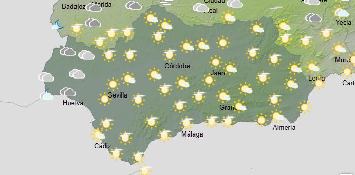 La AEMET anuncia para hoy en Andalucía: cielos poco nubosos aumentando a nubosos, con chubascos ocasionales a partir de la tarde, más probables en la vertiente atlántica y al final del día. Temperaturas mínimas en descenso; máximas sin cambios o en ascenso. Vientos flojos a moderados de componente oeste, ocasionalmente fuertes en el litoral mediterráneo por la tarde.