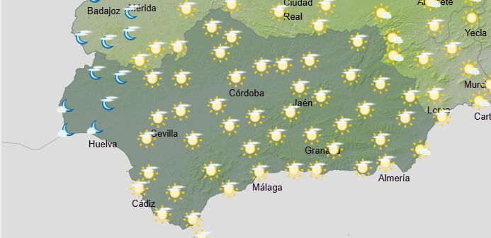 La AEMET prevé para hoy en Andalucía: intervalos nubosos de nubes altas. Temperaturas mínimas en descenso; máximas en descenso en el litoral mediterráneo y sin cambios o en ascenso en el resto. Vientos variables, flojos a moderados.