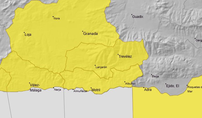 La Agencia Estatal de Meteorología (AEMET) ha activado aviso amarillo por intensas lluvias durante toda la jornada de hoy viernes, 14 de noviembre, tanto en la Costa Tropical como en Nevada y la Alpujarra, ante la llegada a la parte oriental de Andalucía de la borrasca Claudia.