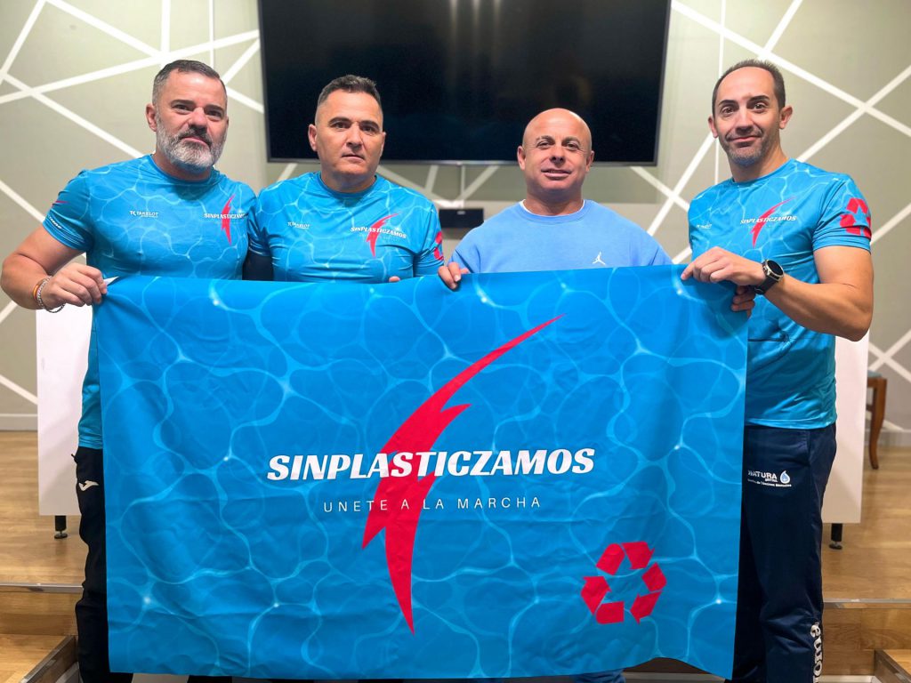 El teniente de alcalde de Deportes del Ayuntamiento de Motril, Daniel Ortega Moreno, junto a los deportistas Andrés Jódar, Juan Carlos Bea y Raúl Rubiño, ha presentado la VII edición de SinPlasticZamos, una iniciativa que combina el deporte de ultrafondo con la defensa del medio ambiente.