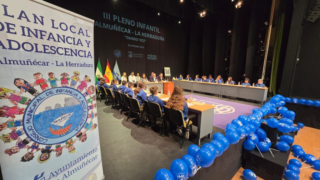 El alcalde de Almuñécar, Juan José Ruiz Joya, ha inaugurado el III Pleno de la Infancia, un acto celebrado en la Casa de la Cultura y que ha reunido a escolares de 5º y 6º de Primaria de los centros educativos de Almuñécar y La Herradura, así como a representantes de la ESO y Bachillerato de algunos de los IES del municipio. La actividad se ha celebrado en torno al Día Universal de los Derechos de la Infancia, que se conmemora cada 20 de noviembre, como parte del compromiso municipal con la promoción de la participación infantil.