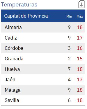 Temperaturas en Andalucía. Aemet.