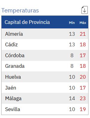 La AEMET anuncia para hoy en Andalucía: cielos muy nubosos en la vertiente atlántica, con precipitaciones débiles ocasionales durante la primera mitad del día; intervalos nubosos en el resto. Tendiendo a poco nubosos por la tarde. Brumas o nieblas matinales en la vertiente atlántica. Temperaturas en ascenso, salvo máximas sin cambios en el tercio occidental. Las mínimas se darán al final del día. Vientos flojos variables.