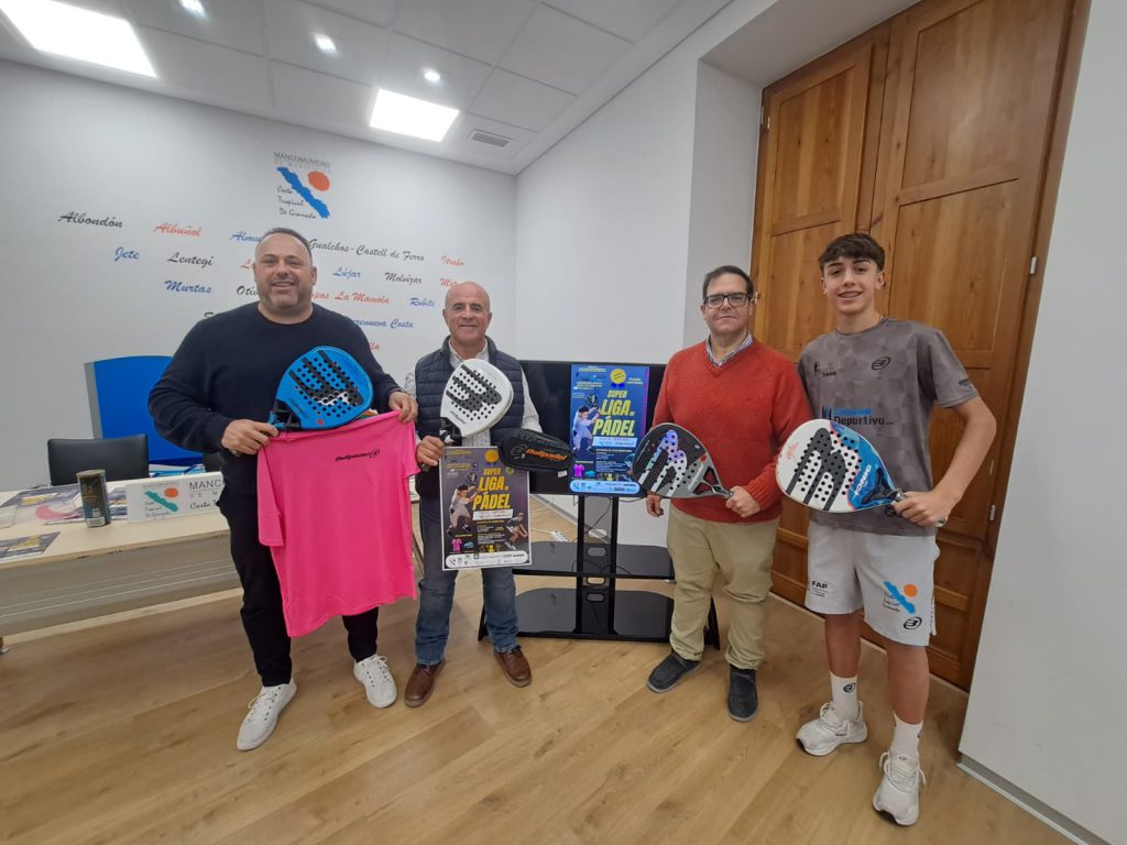 El presidente de la Mancomunidad de Municipios de la Costa Tropical, Rafael Caballero, junto al concejal de Deportes del Ayuntamiento de Almuñécar, Luis Aragón, y el presidente del Club Pádel Team Almuñécar, José Manuel Hidalgo, ha presentado esta mañana la Super Liga de Pádel Costa Tropical, una nueva competición de ámbito comarcal que se disputará entre los meses de enero y septiembre de 2026 en modalidad de parejas no mixtas.