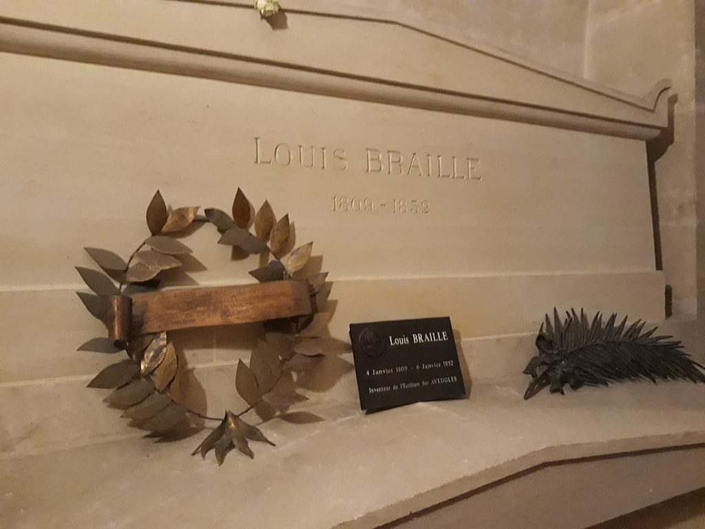 En 1952, un siglo después de su muerte, los restos de Louis Braille son exhumados y trasladados hasta el Panteón de París, situado en el corazón del Barrio Latino, donde permanece junto a grandes personalidades de la historia francesa como Voltaire, Jean-Jacques Rousseau, Víctor Hugo, Émile Zola, Marie y Pierre Curie, Alejandro Dumas y Joséphine Baker, entre otras. Hecho a destacar es que solo las manos de Louis Braille permanecieron en el Cementerio Comunal de Coupvray, en el interior de una urna. Un asteroide descubierto el 27 de mayo de 1992 y que se encuentra en la órbita del planeta Marte, fue bautizado en su honor como “9969 Braille”.