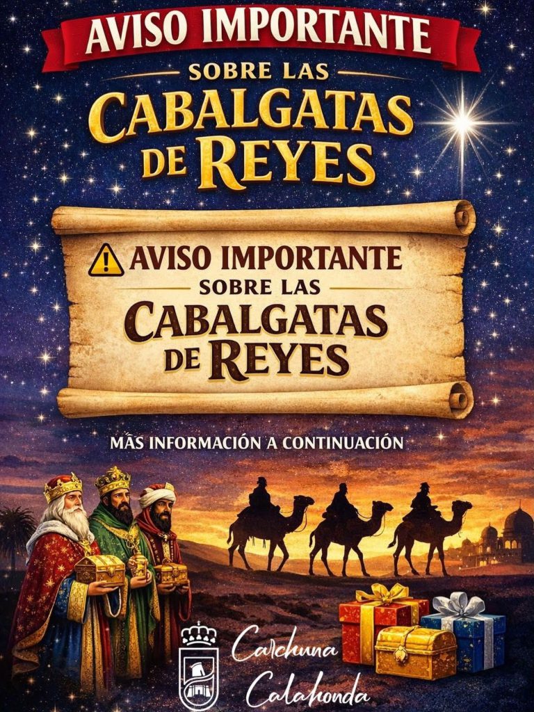 Carchuna: La Cabalgata de Reyes se aplaza al martes 6 de enero, celebrándose a partir de las 18:00 horas.