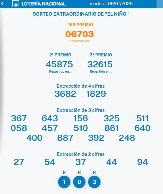 Estos son los premios agraciados en el Sorteo de ‘El Niño’: