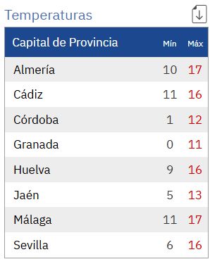 La AEMET prevé para hoy en Andalucía: cielos nubosos, aumentando a cubiertos de oeste a este y con precipitaciones moderadas en la vertiente atlántica, donde podrán ser localmente fuertes y persistentes, y débiles a moderadas en el resto. Temperaturas en ascenso; salvo máximas en descenso en el valle del Guadalquivir. Vientos de componente oeste, flojos a moderados en el interior y moderados a fuertes en el litoral; con rachas muy fuertes ocasionales en cotas altas orientales y en el Estrecho y litoral almeriense al final del día.
