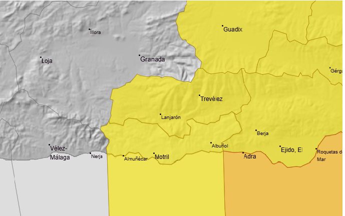 La Agencia Estatal de Meteorología prevé para la jornada de este jueves, 22 de enero, cielos parcialmente cubiertos durante la mañana y muy nubosos en la tarde-noche, con probabilidad (100%) de lluvias. Se mantienen activos dos avisos amarillos, uno por rachas de viento del Oeste de hasta 70 km/h (vigente hasta las seis de la tarde), y otro por fenómenos costeros, esperándose vientos del Oeste y Suroeste de 50 a 60 km/h (fuerza 7) y olas de 3 m (vigente hasta las doce de la noche). Los avisos por viento también se extienden a la Alpujarra granadina.