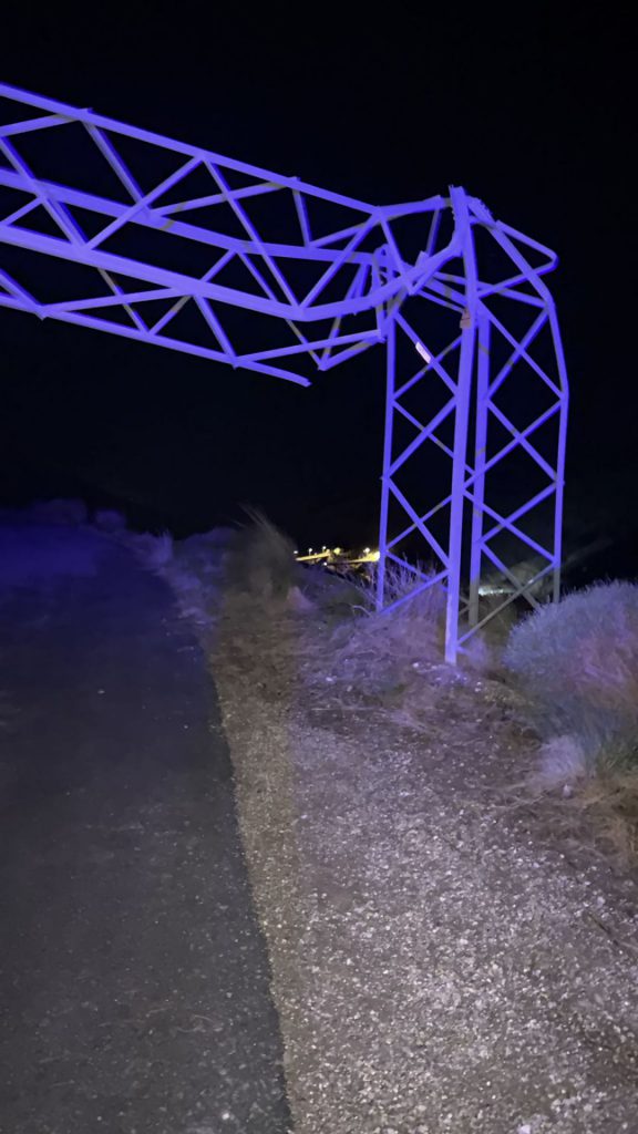 Las fuertes rachas de viento han provocado la rotura de una torreta de alta tensión ubicado en la carretera que sube a la Haza del Trigo, concretamente, un desvío antes de llegar a la propia Haza, donde se ubica la señalización hacia las pedanías de Los Gálvez y Los Díaz, junto a Rubite y Polopos.