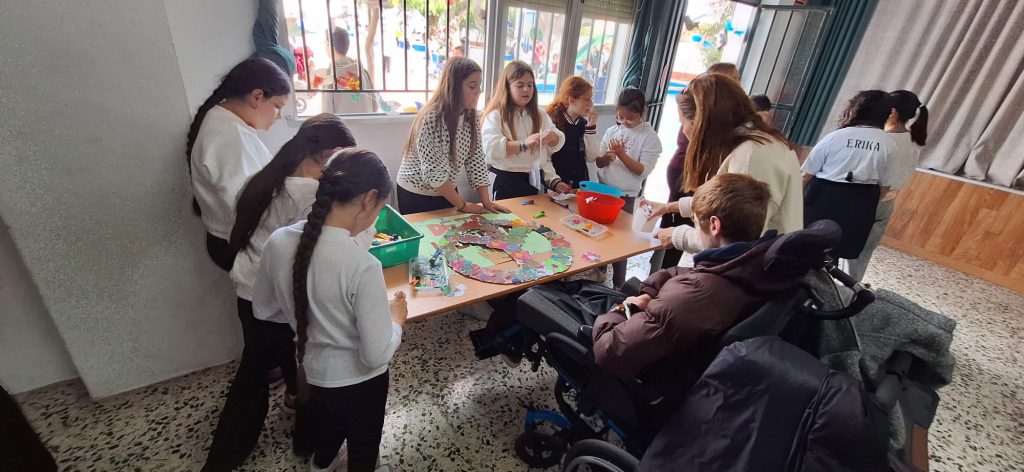 Por lo que respecta a los colegios Luis Pastor, dependiente del Centro de Educación Especial Aprosmo, y la escuela del Ave María Varadero, también se ha conmemorado conjuntamente el “Día Escolar de la Paz y No Violencia” con una jornada inclusiva de convivencia entre los alumnos de ambos centros. A lo largo de toda la mañana se ha organizado un circuito de actividades inclusivas orientadas a fomentar valores como el respeto, la empatía, la cooperación y la convivencia pacífica. La jornada ha sido resultado de un trabajo previo que se ha desarrollado en el centro y ha sido coordinado por el equipo de Pedagogía Terapéutica, que ha impulsado la participación de todas las etapas educativas en la elaboración de los materiales empleados y los recursos adaptados. Este proceso ha permitido implicar a todo el alumnado en la preparación del Día de la Paz, promoviendo la reflexión conjunta sobre la convivencia la diversidad y el respeto desde una perspectiva inclusiva. Durante el encuentro, los alumnos han compartido una experiencia educativa enriquecedora y significativa a través de actividades adaptadas a la diversidad, como juegos cooperativos, propuestas de expresión artística, dinámicas de movimiento y comunicación emocional. Estas actividades han favorecido la interacción, el apoyo mutuo y el aprendizaje compartido, para trabajar la paz desde las vivencias directas. Uno de los aspectos más destacados de la jornada fue el clima de cercanía y colaboración que se generó entre el alumnado, reforzando el compromiso de ambos centros con una educación inclusiva y accesible. Cada alumno y alumna pudo sentirse parte activa del grupo, demostrando así que la diversidad es una fuente de enriquecimiento para toda la comunidad educativa.