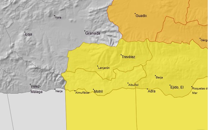 La Costa Tropical se encuentra en aviso amarillo fenómenos costeros con vientos del oeste de 50 a 60 km/h (fuerza 7) y olas de 3 a 4 metros. Igualmente, está activado el aviso por fuertes vientos que pueden alcanzar rachas de hasta 80 km/h.