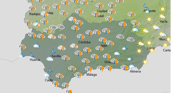 La Aemet anuncia para hoy en Andalucía: cielos cubiertos acompañados de precipitaciones moderadas que se irán extendiendo de oeste a este, siendo localmente fuertes y persistentes en las sierras Béticas; tenderán a abrirse claros a partir de la tarde en la vertiente atlántica. Cota de nieve descendiendo hasta los 1200 metros al final del día. Temperaturas en descenso, las mínimas probablemente se alcanzarán al final del día. Vientos moderados de componente oeste, con intervalos fuertes y rachas ocasionalmente muy fuertes en amplias zonas, más intensas en el tercio oriental.