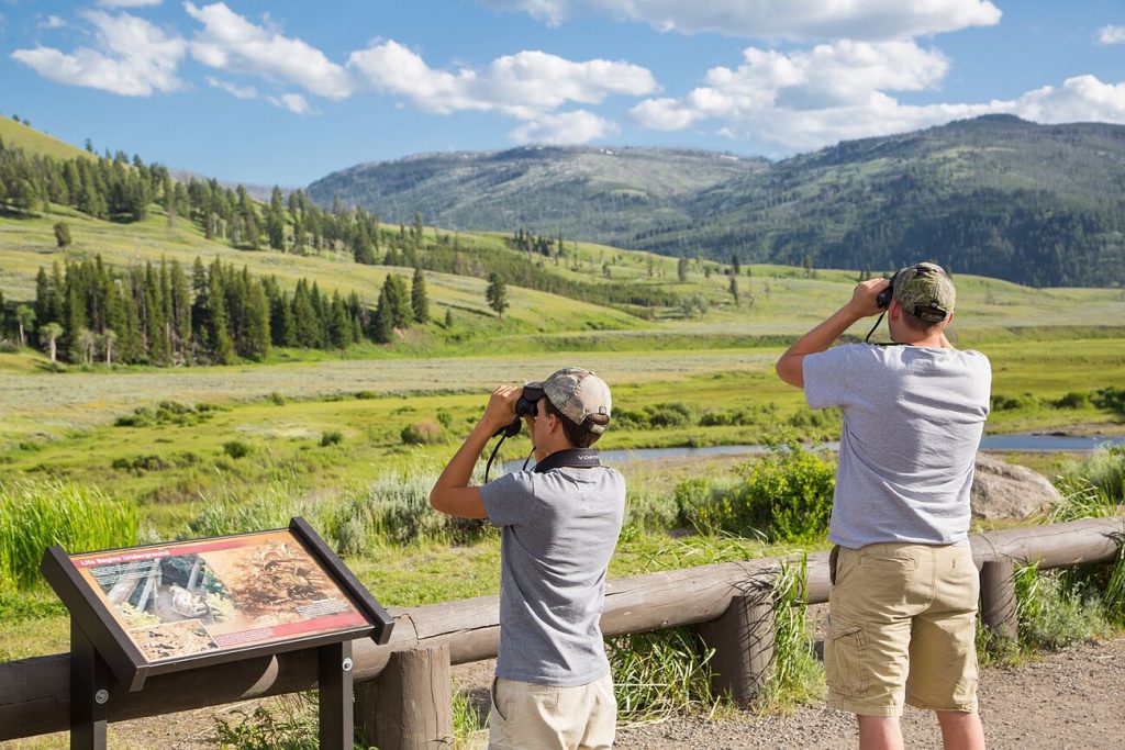 Curiosamente, desde 1910 y hasta la década de 1960, estaba permitido que los visitantes dieran comida a los osos negros desde las carreteras del parque. No es de extrañar que estos ágiles y robustos carnívoros se convirtieran en el familiar símbolo de Yellowstone. Hoy, las reglas exigen a los visitantes que se mantengan como mínimo a 100 metros de lobos y osos. Practicar senderismo, acampar, pescar, disfrutar de las exposiciones y películas y asistir a programas guiados por guardabosques son algunas de las muchas actividades que se pueden disfrutar en el Parque Nacional Yellowstone.