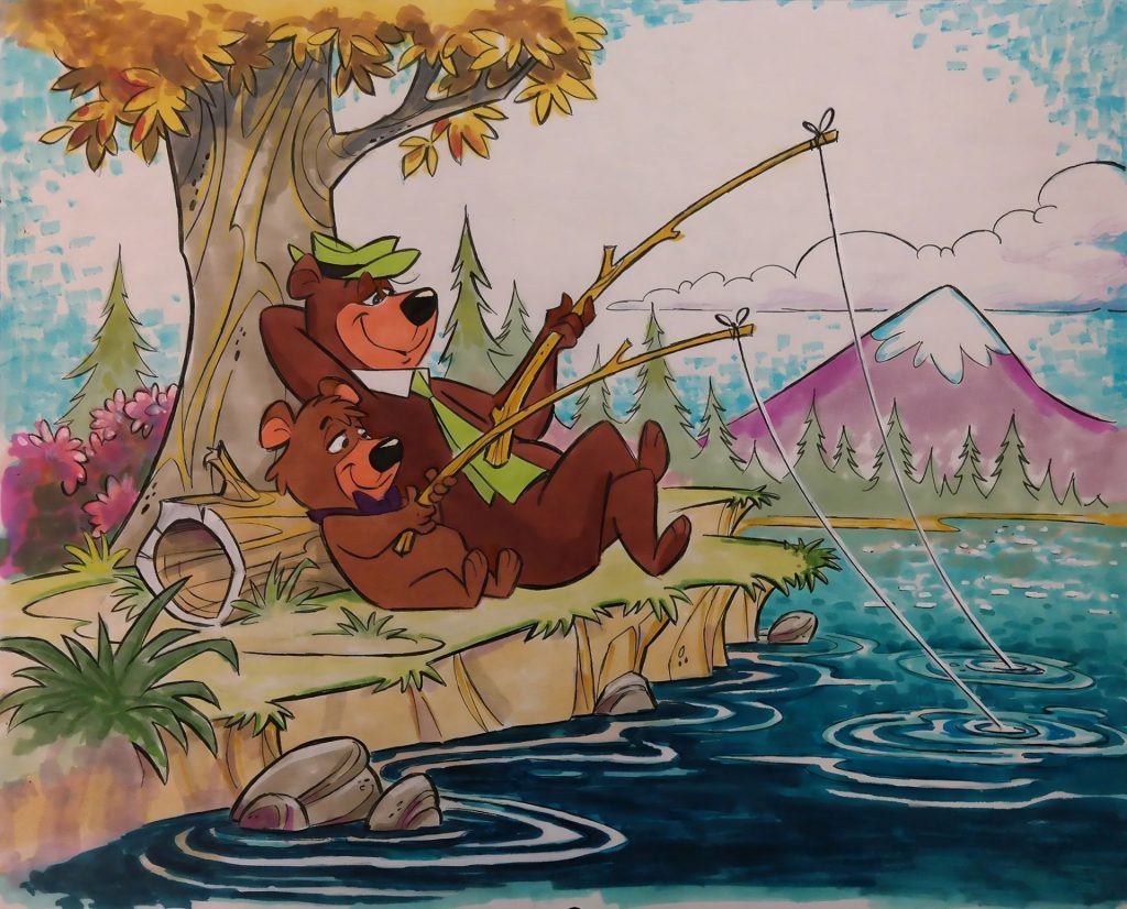 Mediada la década de 1960, durante mi infancia, uno de los programas de la Sesión de Tarde de Televisión Española que más me gustaba ver eran los dibujos animados de “El Oso Yogui” (“Yogi Bear”, Hanna-Barbera, 1958). Yogui es un oso pardo, antropomorfo y parlante, de pelaje castaño, con un sombrero Stetson de color verde, cuello de camisa de color blanco y una elegante corbata del mismo color que su sombrero. En sus “aventuras” le acompaña el pequeño Bubu, osito de color pardo claro, pajarita color morada y flequillo despeinado. Y, casi siempre, es perseguido por el guardabosque Smith, que intenta que Yogui no robe las cestas de picnic repletas de suculentos manjares que llevan los campistas, que quieren pasar una genial jornada en la Naturaleza de su hogar ficticio, el “Jellystone Park”.