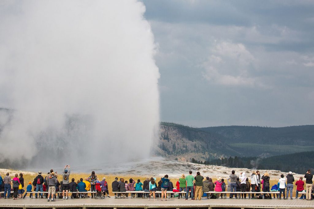 Visitantes del Parque disfrutando del espectáculo de los géiseres.