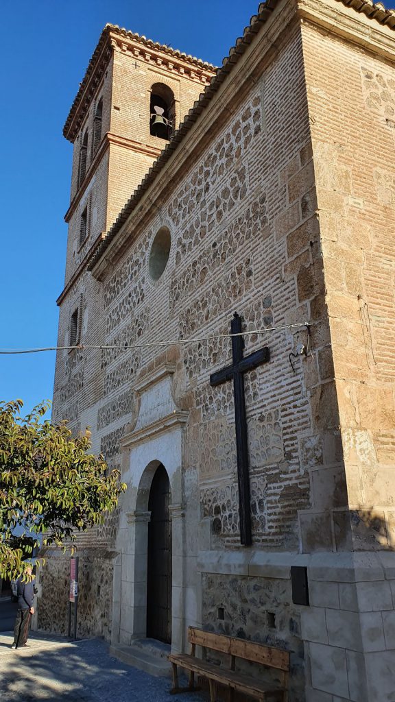 Una vez demolida la mezquita, se reaprovechan las piedras en los nuevos muros. Fue construida en el siglo XVI, tiene una sola nave de planta rectangular y cabecera plana, cuenta con armadura mudéjar y un pequeño coro. Su estilo es de diseño renacentista y en su interior guarda un precioso retablo neoclásico, además de esculturas de San Juan Bautista, la Virgen del Rosario… Tardan mucho en construir la iglesia y en 1568 estalla la REVELIÓN DE LAS ALPUJARRAS, todas las iglesias del Valle de Lecrín y de la Alpujarra ardieron como teas y a los sacristanes que pudieron los colgaron. Después, con la entrada de los Tercios de D. Juan de Austria, se multiplicó la represión sobre los moriscos…